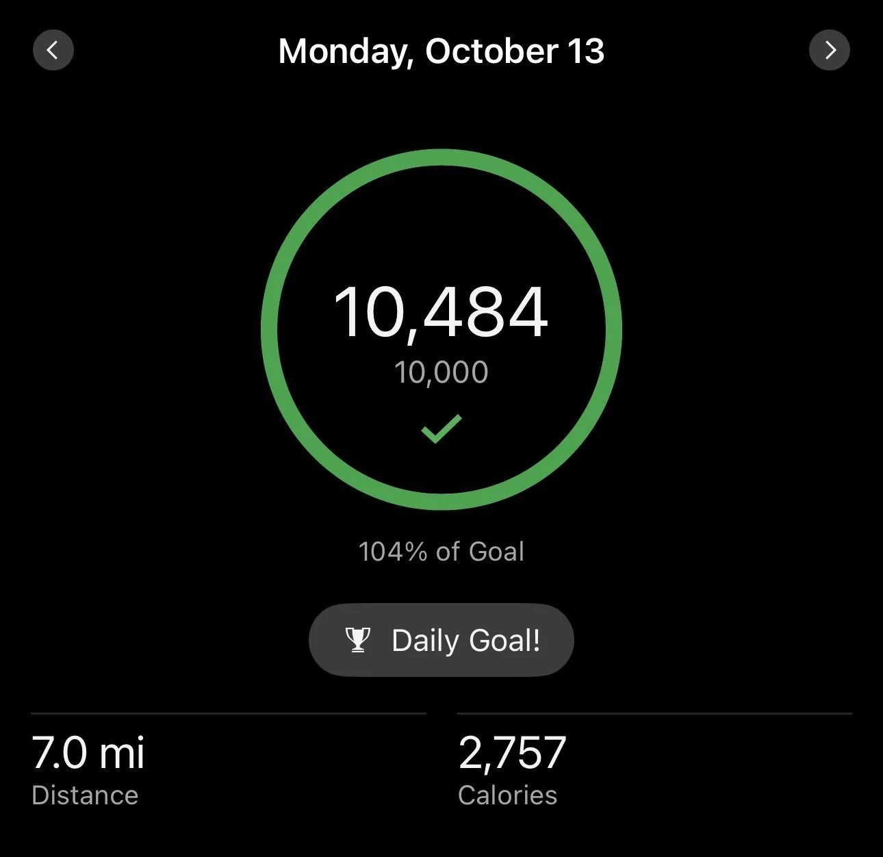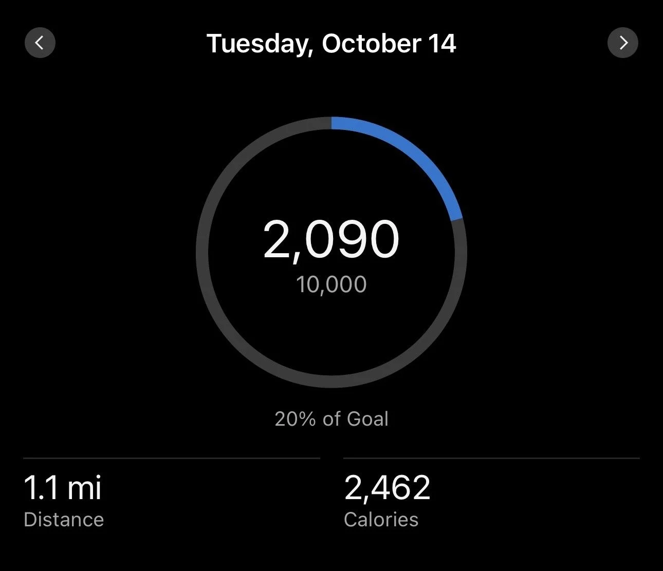 From the end of September, over the following 6 months I aim to establish two consistent habits. Hitting my caloric goal of under 1700 Cal with consistent tracking, and not giving up on 10k steps a day no matter what.
